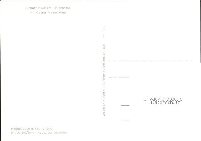 71994527 Fraueninsel Chiemsee Kloster Frauenwoerth postalisch nicht gelaufen Erhaltung siehe scans KatCode: 11110009187123