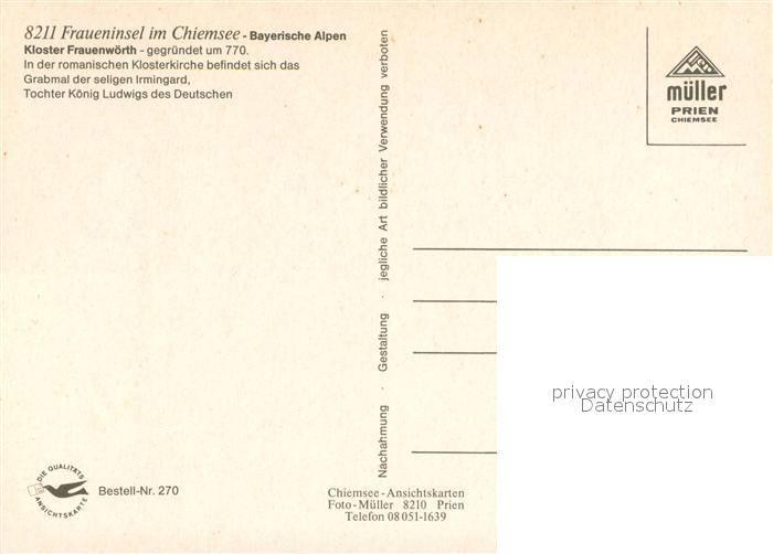 73617991 Fraueninsel Chiemsee Kloster Frauenwoerth Fliegeraufnahme postalisch nicht gelaufen Erhaltung siehe scans [FriedD77] KatCode: 11110009187123