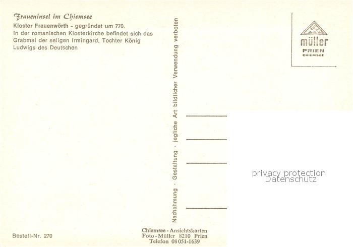 73668664 Fraueninsel Chiemsee Kloster Frauenwoerth Fliegeraufnahme postalisch nicht gelaufen Erhaltung siehe scans [FriedD77] KatCode: 11110009187123