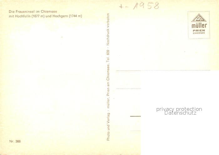 73063920 Fraueninsel Chiemsee mit Hochfelln und Hochgern postalisch nicht gelaufen Erhaltung siehe scans [FriedD77] KatCode: 11110009187123