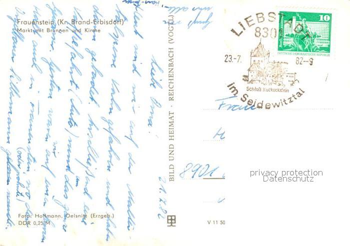 73032651 alte Postkarte Frauenstein Brand-Erbisdorf Markt Brunnen Kirche postalisch gelaufen Erhaltung siehe scans [KathaD81] KatCode: 11110014177030