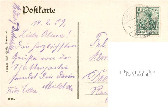73821368 alte Postkarte Frauenstein Brand-Erbisdorf Osterzgebirge Strasse von Freiberg im Winter postalisch gelaufen Erhaltung siehe scans [FriedD77] KatCode: 11110014177030