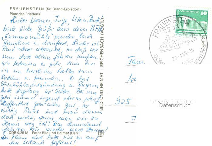 72708543 alte Postkarte Frauenstein Brand-Erbisdorf Platz des Friedens im Winter postalisch gelaufen Erhaltung siehe scans [FriedD77] KatCode: 11110014177030