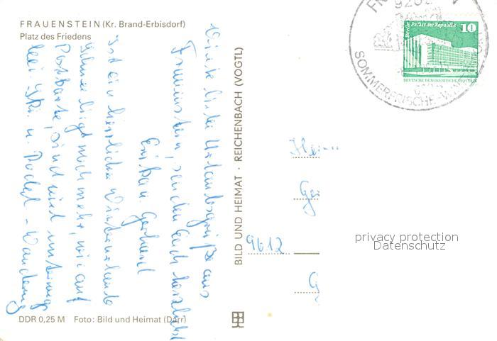 73334652 alte Postkarte Frauenstein Brand-Erbisdorf Platz des Friedens im Winter postalisch gelaufen Erhaltung siehe scans [FriedD77] KatCode: 11110014177030