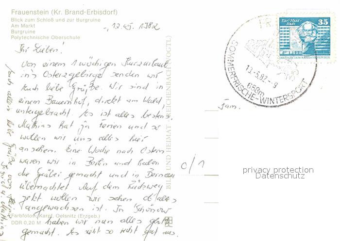 72775112 alte Postkarte Frauenstein Brand-Erbisdorf Schloss Burgruine Markt Polytechnische Oberschule postalisch gelaufen Erhaltung siehe scans [AndreD76] KatCode: 11110014177030