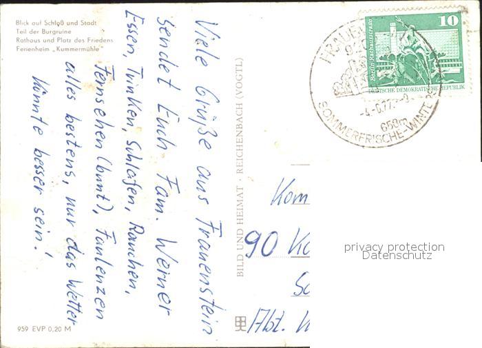 72373578 alte Postkarte Frauenstein Brand-Erbisdorf Schloss Stadt Burgruine Platz des Friedens postalisch gelaufen Erhaltung siehe scans KatCode: 11110014177030