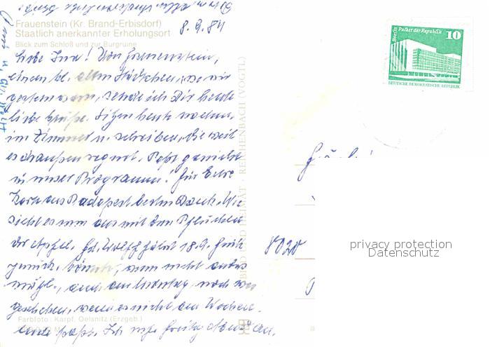 72623773 alte Postkarte Frauenstein Brand-Erbisdorf Schloss und Burgruine postalisch gelaufen Erhaltung siehe scans [WerneD78] KatCode: 11110014177030