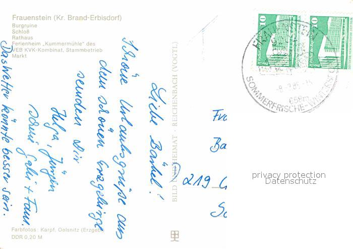 72814073 alte Postkarte Frauenstein Sachsen Burgruine Schloss Rathaus Ferienheim Kummermuehle postalisch gelaufen Erhaltung siehe scans [LiesaD40] KatCode: 11110014177140