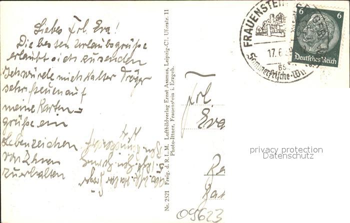 31705692 alte Postkarte Frauenstein Sachsen Fliegeraufnahme postalisch gelaufen Erhaltung siehe scans KatCode: 11110014177140