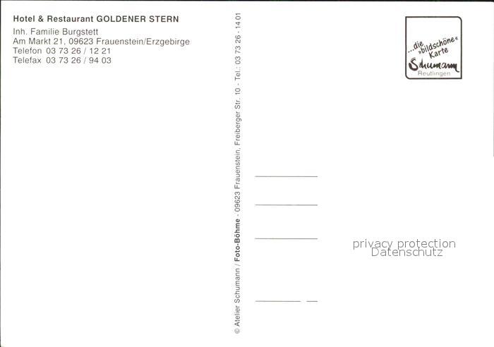 72507897 Frauenstein Sachsen Hotle Restaurant Goldener Stern postalisch nicht gelaufen Erhaltung siehe scans KatCode: 11110014177140