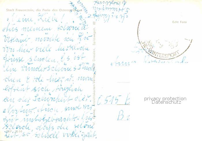 72881380 alte Postkarte Frauenstein Sachsen Ortsansicht mit Schloss Burgruine postalisch gelaufen Erhaltung siehe scans [FriedD77] KatCode: 11110014177140