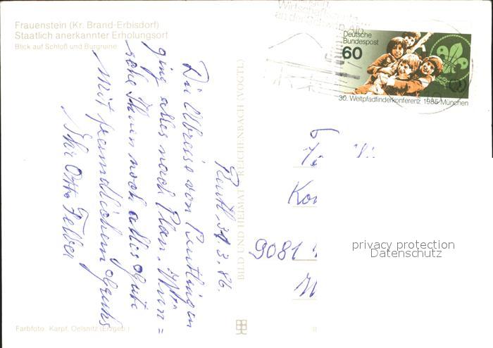 72324107 alte Postkarte Frauenstein Sachsen Schloss mit Burgruine postalisch gelaufen Erhaltung siehe scans KatCode: 11110014177140