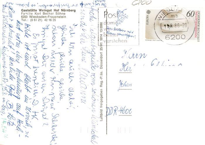 73890074 Frauenstein Wiesbaden Gaststaette Weingut Hof Nuernberg Fliegeraufnahme postalisch gelaufen Erhaltung siehe scans [WerneD78] alte Postkarte Wern Katcode 11110006414000