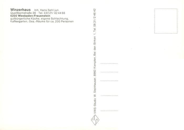 73883343 Frauenstein Wiesbaden Restaurant Winzerhaus Gaststube Freiterrasse postalisch nicht gelaufen Erhaltung siehe scans [FriedD77] Frie Katcode 11110006414000
