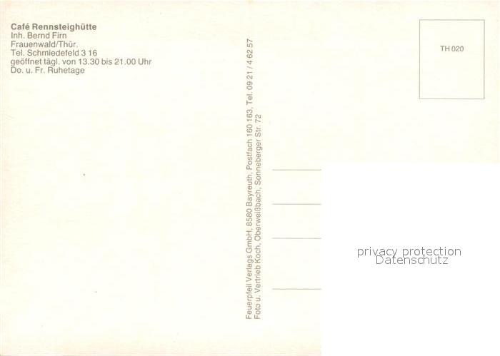 73718068 Frauenwald Thueringen Cafe Rennsteighuette postalisch nicht gelaufen Erhaltung siehe scans [WerneD78] KatCode: 11110016070015