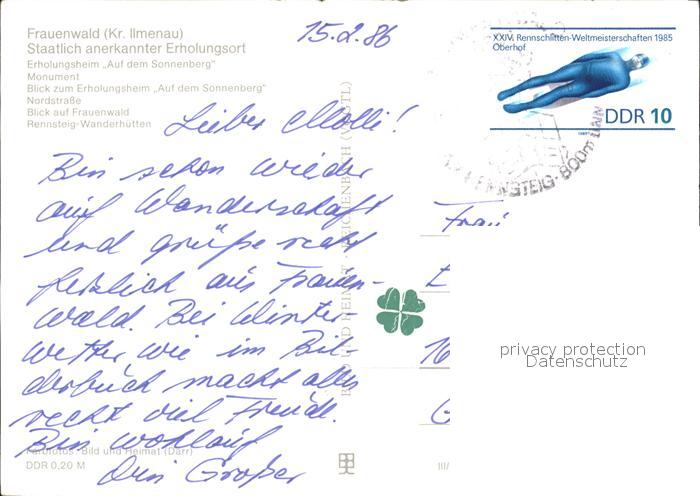 72373125 alte Postkarte Frauenwald Thueringen Erholungsheim Sonnenberg Monument Nordstrasse Rennsteig Wanderhuetten Winterpanorama postalisch gelaufen Erhaltung siehe scans KatCode: 11110016070015