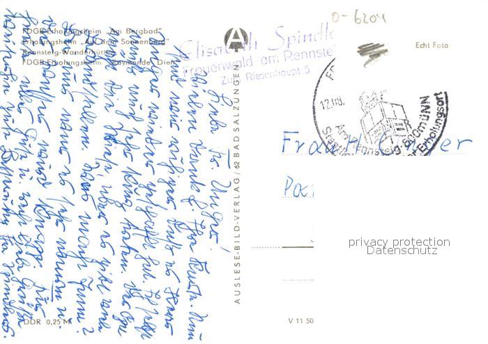 73099848 alte Postkarte Frauenwald Thueringen FDGB Erholungsheime Bergbad Sonnenberg Rennsteig Wanderhuetten postalisch gelaufen Erhaltung siehe scans [KathaD81] KatCode: 11110016070015