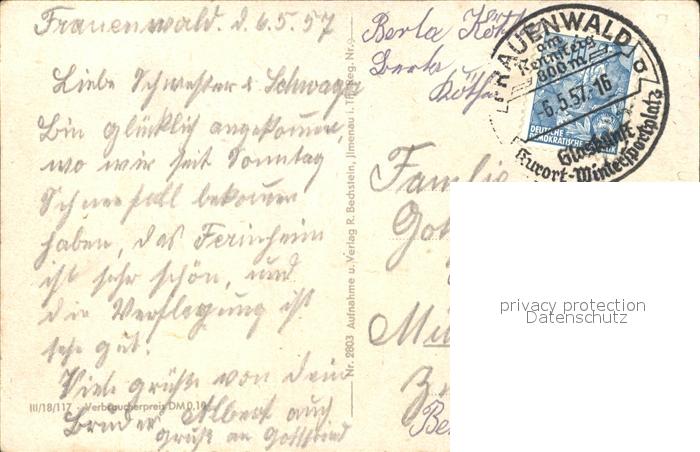 31713973 alte Postkarte Frauenwald Thueringen FDGB Ferienheim postalisch gelaufen KatCode: 11110016070015