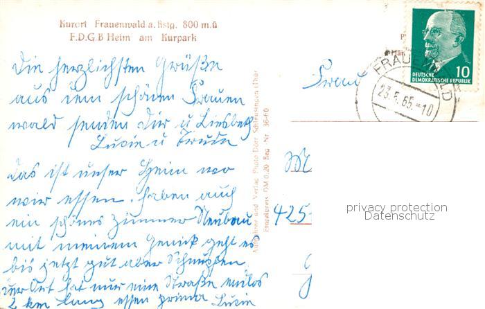 73797010 alte Postkarte Frauenwald Thueringen FDGB Heim am Kurpark postalisch gelaufen Erhaltung siehe scans [FriedD77] KatCode: 11110016070015