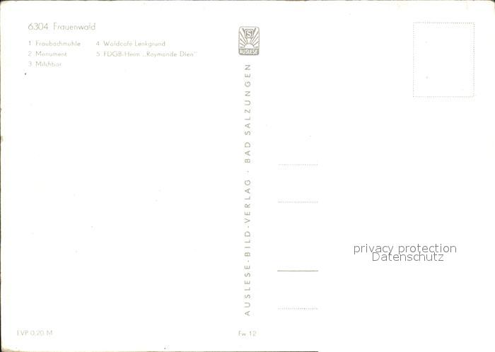 72557381 Frauenwald Thueringen FraubachmuehleMonument Milchbar Waldcafe Lenkgrund postalisch nicht gelaufen Erhaltung siehe scans [KathaD79] KatCode: 11110016070015