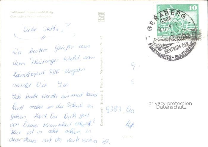 72339323 alte Postkarte Frauenwald Thueringen Gaststaette Fraubachmuehle postalisch gelaufen Erhaltung siehe scans KatCode: 11110016070015