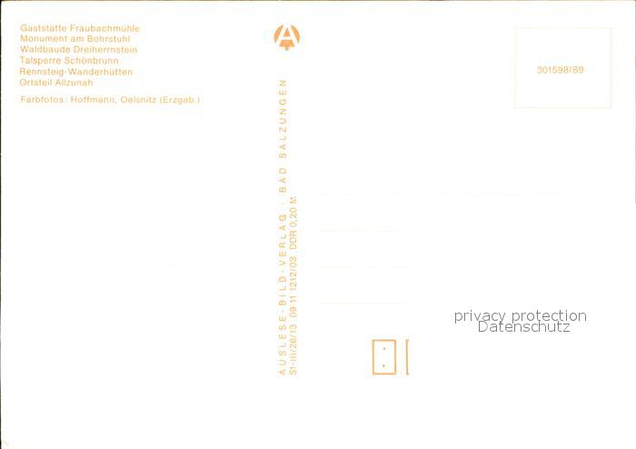 72557380 Frauenwald Thueringen Gaststaette Fraubachmuehle Monumend Bohrstuhle Waldbaude Allzunah postalisch nicht gelaufen Erhaltung siehe scans [KathaD79] KatCode: 11110016070015