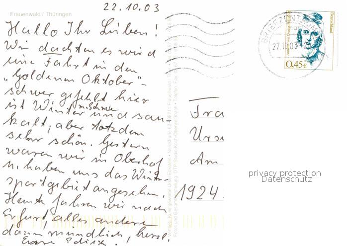72622308 alte Postkarte Frauenwald Thueringen Kirche postalisch gelaufen Erhaltung siehe scans [NatalD47] KatCode: 11110016070015