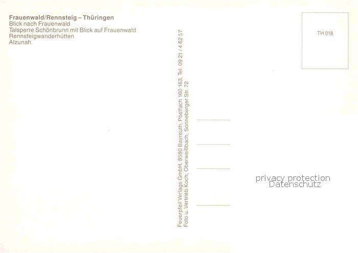 72631191 Frauenwald Thueringen Panorama Talsperre Schoenbrunn Rennsteig Wanderhuetten Allzunah postalisch nicht gelaufen Erhaltung siehe scans [WerneD78] KatCode: 11110016070015