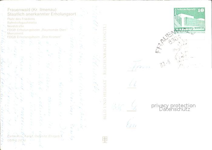 72114768 alte Postkarte Frauenwald Thueringen Platz des Friedens Bahnhofsgaststaette Nordstrasse postalisch gelaufen Erhaltung siehe scans KatCode: 11110016070015