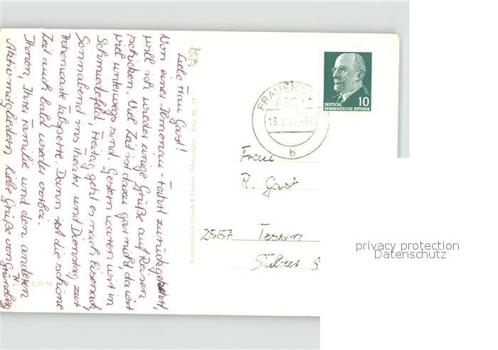 71965841 alte Postkarte Frauenwald Thueringen Rennsteig Platz des Friedens Lenkgrund FDGB Heim Raymonde Dien postalisch gelaufen Erhaltung siehe scans KatCode: 11110016070015