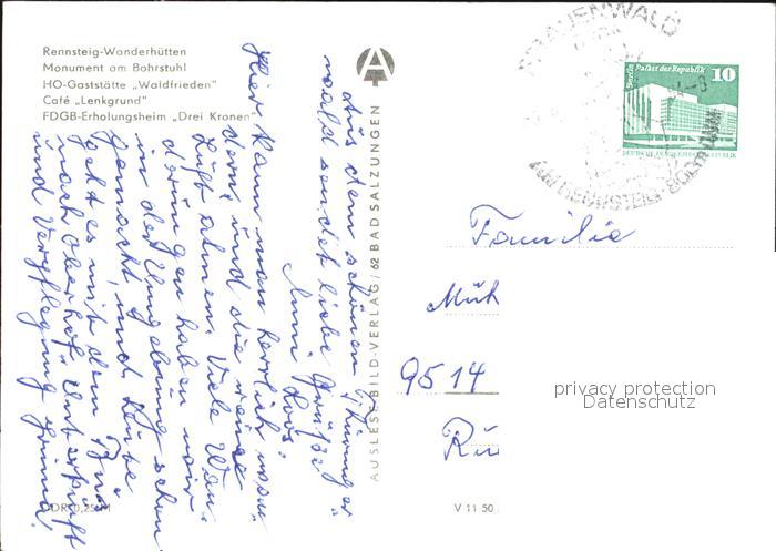 72548272 alte Postkarte Frauenwald Thueringen Rennsteig-Wanderhuette Monument Cafe-Lenkgrund postalisch gelaufen Erhaltung siehe scans [LiesaD40 kv019box] KatCode: 11110016070015