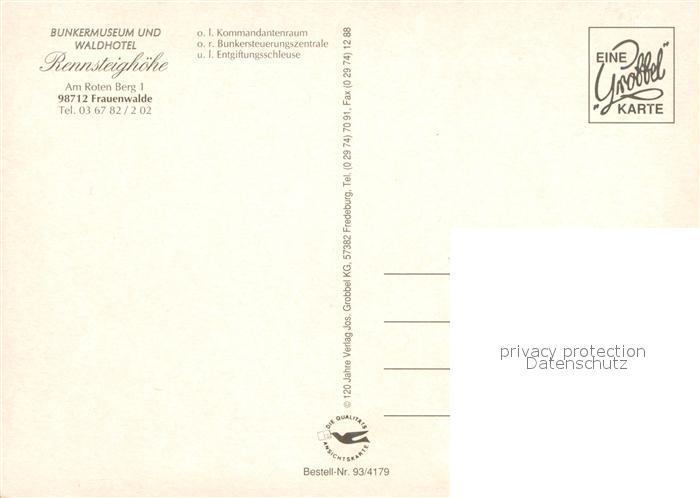 73644966 Frauenwalde Thueringen Bunkermuseum und Waldhotel Rennsteighoehe Kommandantenraum Bunkersteuerungszentrale Entgiftungsschleuse postalisch nicht gelaufen Erhaltung siehe scans [WerneD78] KatCode: 11110016070015