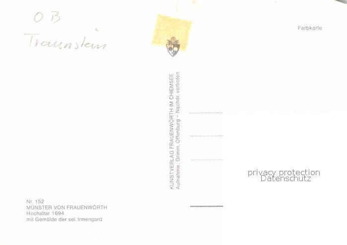 72889829 Frauenwoerth Chiemsee Muenster Hochaltar 17. Jhdt. Gemaelde postalisch nicht gelaufen Erhaltung siehe scans [FriedD77] KatCode: 11110009187123