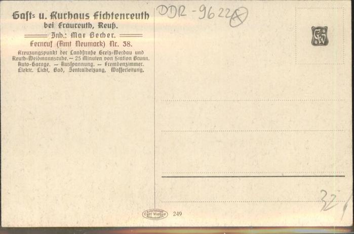 40908280 Fraureuth Reuss Gasthaus Kurhaus Fichtenreuth KatCode 11110014193100