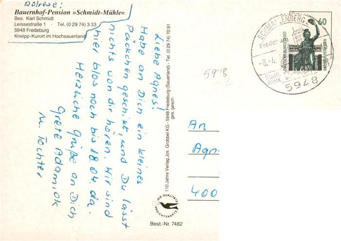 73883160 alte Postkarte Fredeburg Schmallenberg Bauernhof Pension Schmidt Muehlen postalisch gelaufen Erhaltung siehe scans [FriedD77] KatCode: 11110005958040