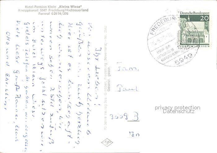 72465400 alte Postkarte Fredeburg Schmallenberg Freibad Kneipp postalisch gelaufen Erhaltung siehe scans KatCode: 11110005958040