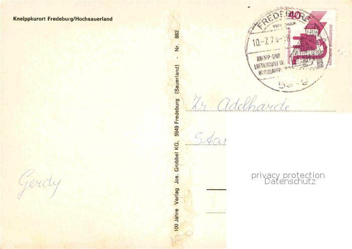 72863621 alte Postkarte Fredeburg Schmallenberg Hauptstrasse Fachwerkhaeuser Kirche Kneippkurort postalisch gelaufen Erhaltung siehe scans [FriedD77] KatCode: 11110005958040