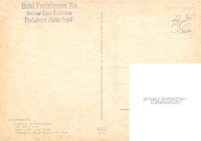 73608864 Fredeburg Schmallenberg Hotel Fredeburger Hof postalisch nicht gelaufen Erhaltung siehe scans [KathaD81] KatCode: 11110005958040