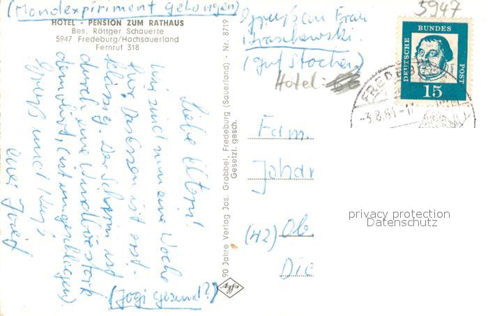 73709206 alte Postkarte Fredeburg Schmallenberg Hotel-Pension Zum Rathaus postalisch gelaufen Erhaltung siehe scans [LiesaD40] KatCode: 11110005958040