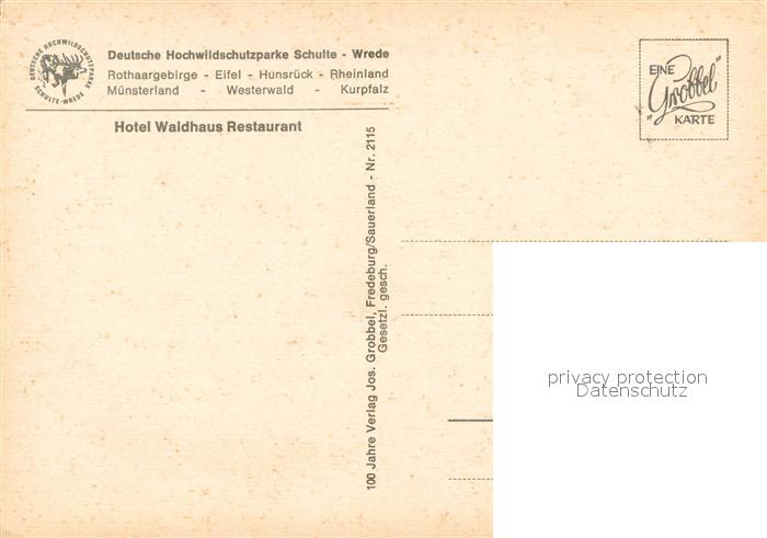 73633884 Fredeburg Schmallenberg Hotel Waldhaus Restaurant Deutsche Hochwildschutzparke Schulte Wrede postalisch nicht gelaufen Erhaltung siehe scans [WerneD78] KatCode: 11110005958040