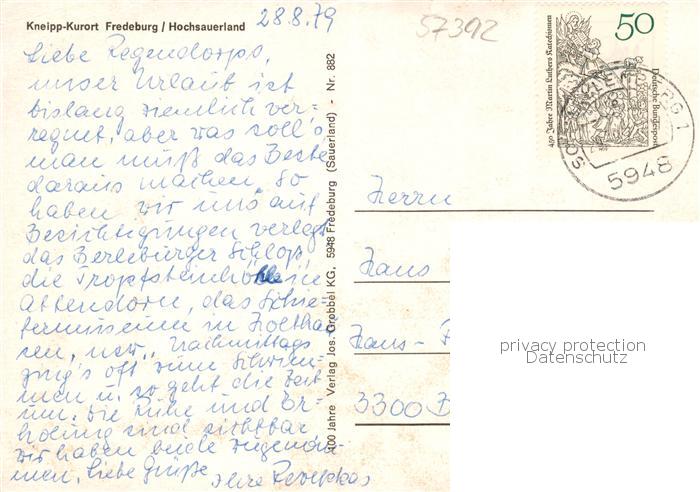 73865721 alte Postkarte Fredeburg Schmallenberg Kneipp-Kurort Ortszentrum Hauptstrasse Fachwerkhaeuser Kirche postalisch gelaufen Erhaltung siehe scans [FriedD77] KatCode: 11110005958040
