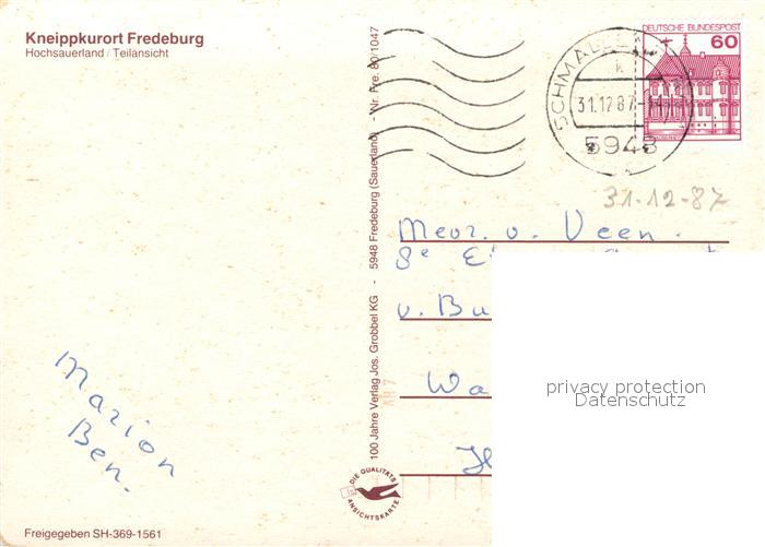 73152552 alte Postkarte Fredeburg Schmallenberg Kneippkurort Fliegeraufnahme postalisch gelaufen Erhaltung siehe scans [FriedD77] KatCode: 11110005958040