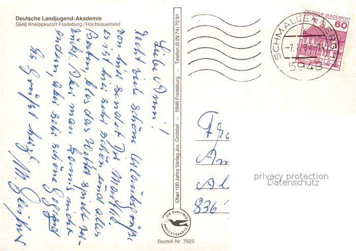 73026451 alte Postkarte Fredeburg Schmallenberg Landjugend Akademie postalisch gelaufen Erhaltung siehe scans [KathaD81] KatCode: 11110005958040