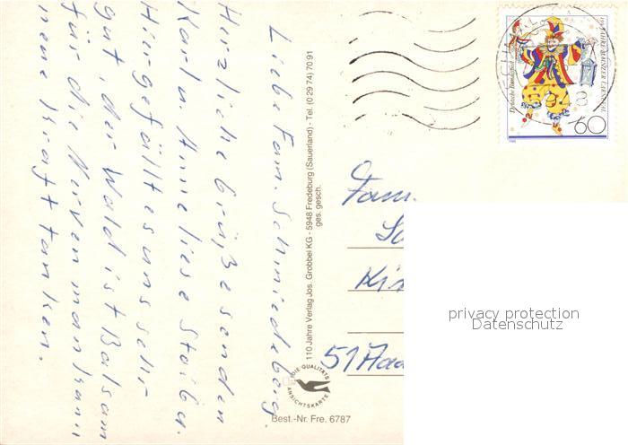 73197850 alte Postkarte Fredeburg Schmallenberg Panorama Strasse Wassertreten postalisch gelaufen Erhaltung siehe scans [WerneD78] KatCode: 11110005958040