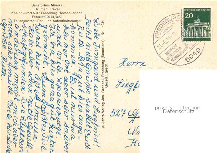 72845380 alte Postkarte Fredeburg Schmallenberg Sanatorium Monika postalisch gelaufen Erhaltung siehe scans [AndreD76] KatCode: 11110005958040