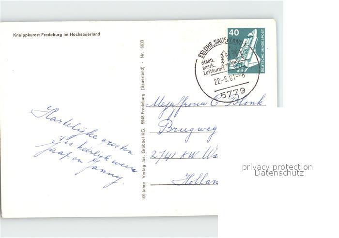 72300543 alte Postkarte Fredeburg Schmallenberg Sauerland postalisch gelaufen Erhaltung siehe scans KatCode: 11110005958040