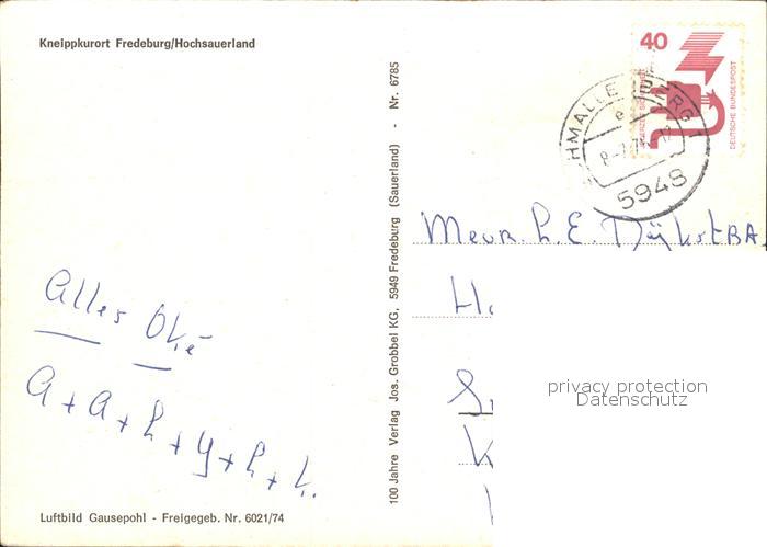 72255299 alte Postkarte Fredeburg Schmallenberg Sauerland Fliegeraufnahme Kirchenpartie postalisch gelaufen Erhaltung siehe scans KatCode: 11110005958040