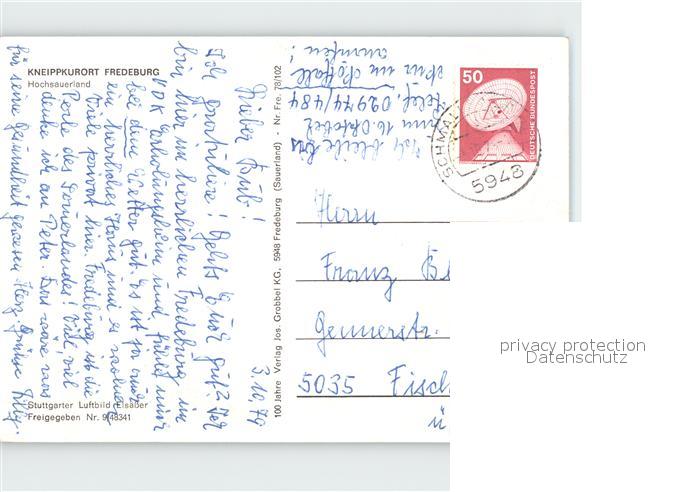 72921914 alte Postkarte Fredeburg Schmallenberg Sauerland Fliegeraufnahme postalisch gelaufen Erhaltung siehe scans [NatalD47] KatCode: 11110005958040