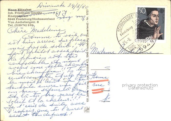 72235744 alte Postkarte Fredeburg Schmallenberg Sauerland Ortsansicht Schwimmbad Winteridyll postalisch gelaufen Erhaltung siehe scans KatCode: 11110005958040