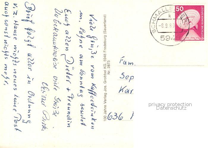 73224567 alte Postkarte Fredeburg Schmallenberg Schwimmbad Kurpark Panorama postalisch gelaufen Erhaltung siehe scans [KathaD81] KatCode: 11110005958040